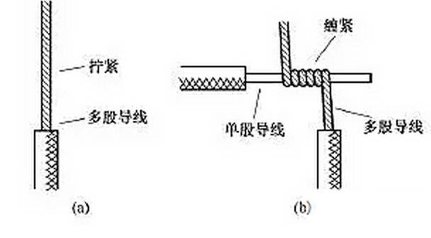 絞合連接是指將需連接導(dǎo)線的芯線直接緊密絞合在一起。銅導(dǎo)線常用絞合連接。