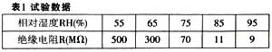 (1) 濕度的影響表 1 中的一組試驗(yàn)數(shù)據(jù), 表明濕度對(duì)絕緣電阻測(cè)量的影響。 由表 1 可見(jiàn),絕緣電阻對(duì)濕度變化是很敏感的。 相對(duì)濕度增加, 絕緣電阻降低。 當(dāng)環(huán)境的相對(duì)濕度大于75 %時(shí), 一般在絕緣材料表面上開(kāi)始出現(xiàn)微小的水珠或薄薄的水膜。 實(shí)際上, 表面絕緣電